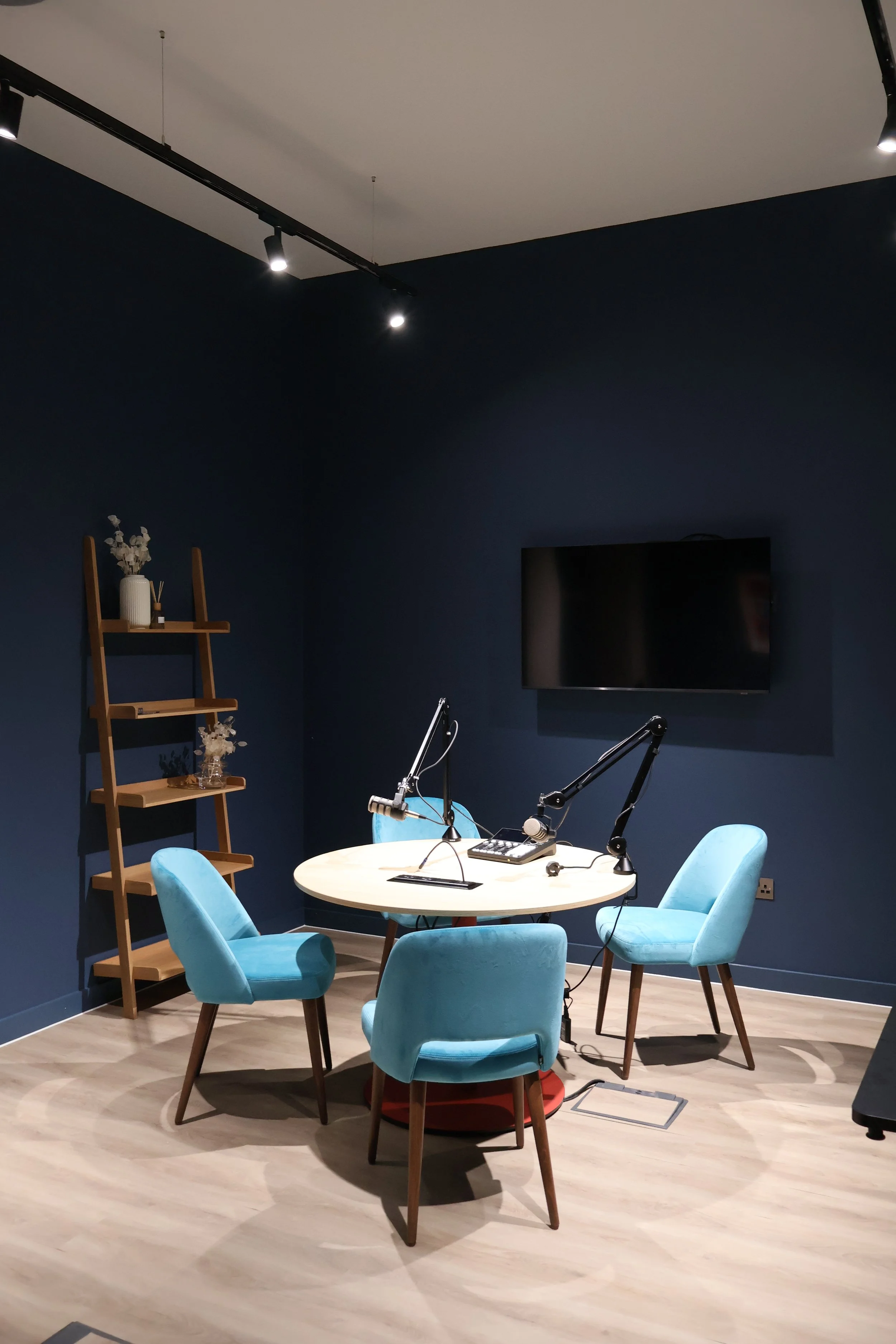 Walking through the building, it is easy to see how that ambition translates into physical space. There are desks arranged in productive zones for people who want quiet focus, comfortable lounges and breakout areas for informal conversations, booths for private calls, glass-fronted meeting rooms, larger boardrooms, and a creative studio already configured for recording podcasts or producing content.